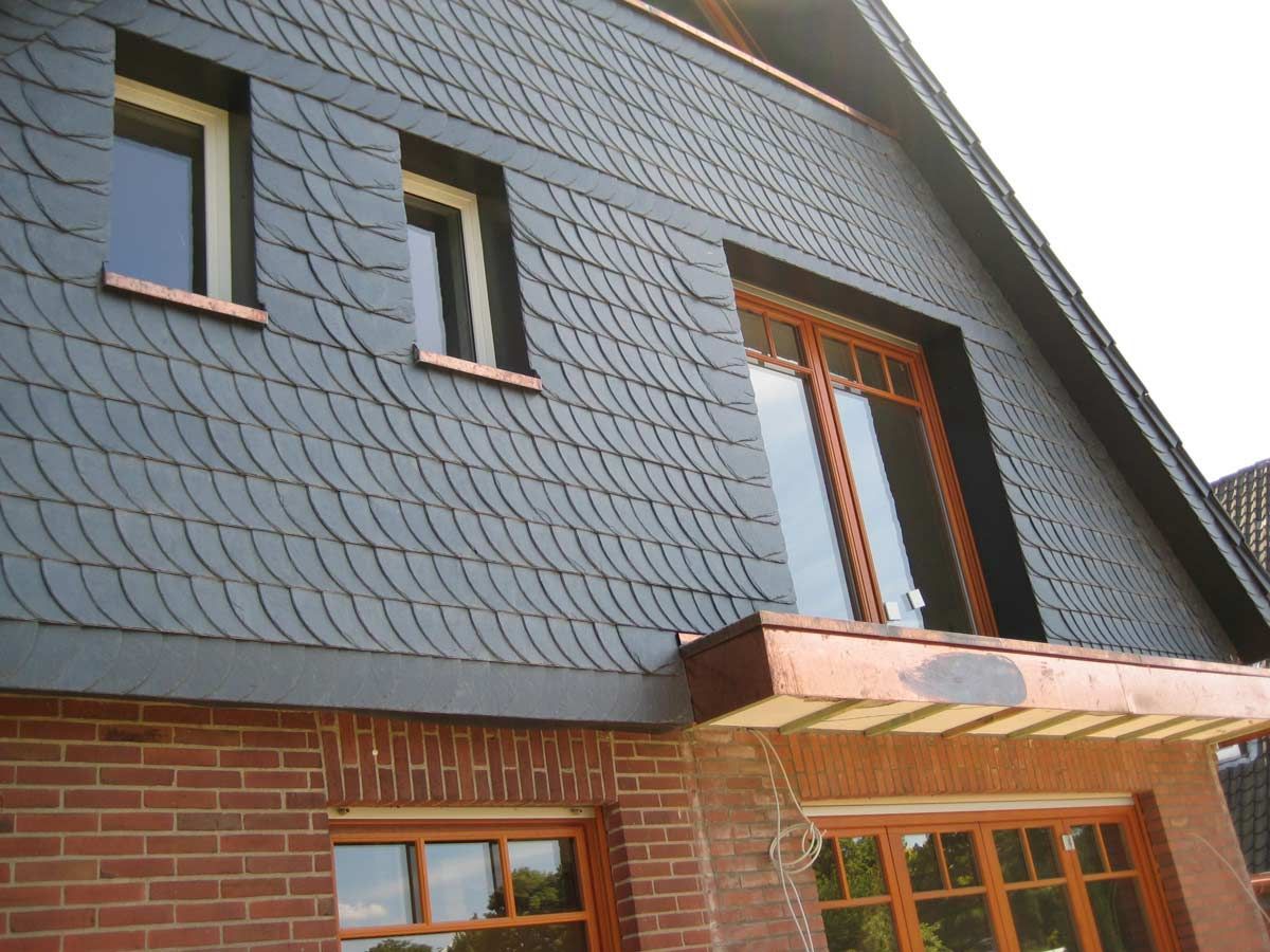 Wir bieten Ihnen Fassadenbekleidungen aus Metall, Schiefer, klein- bzw. großformatige Fassadenplatten oder -paneelen einschließlich einer fachgerechten Unterkonstruktion an.